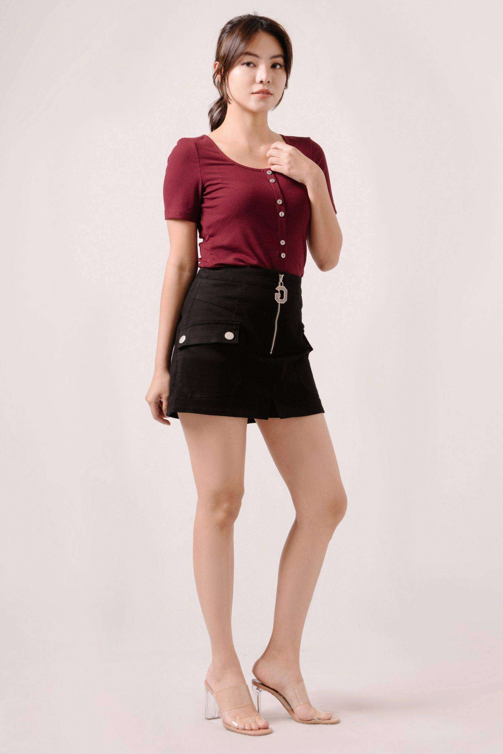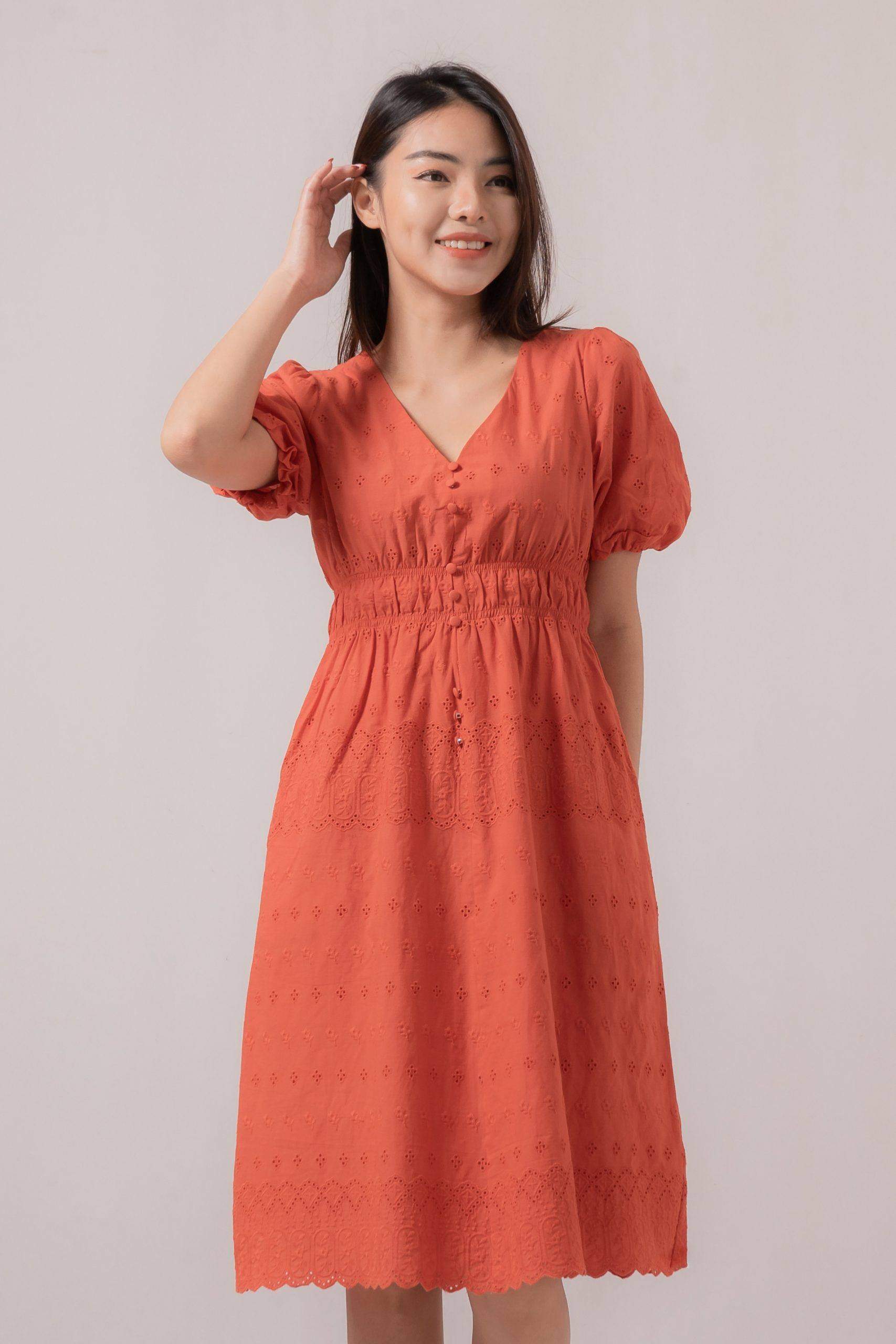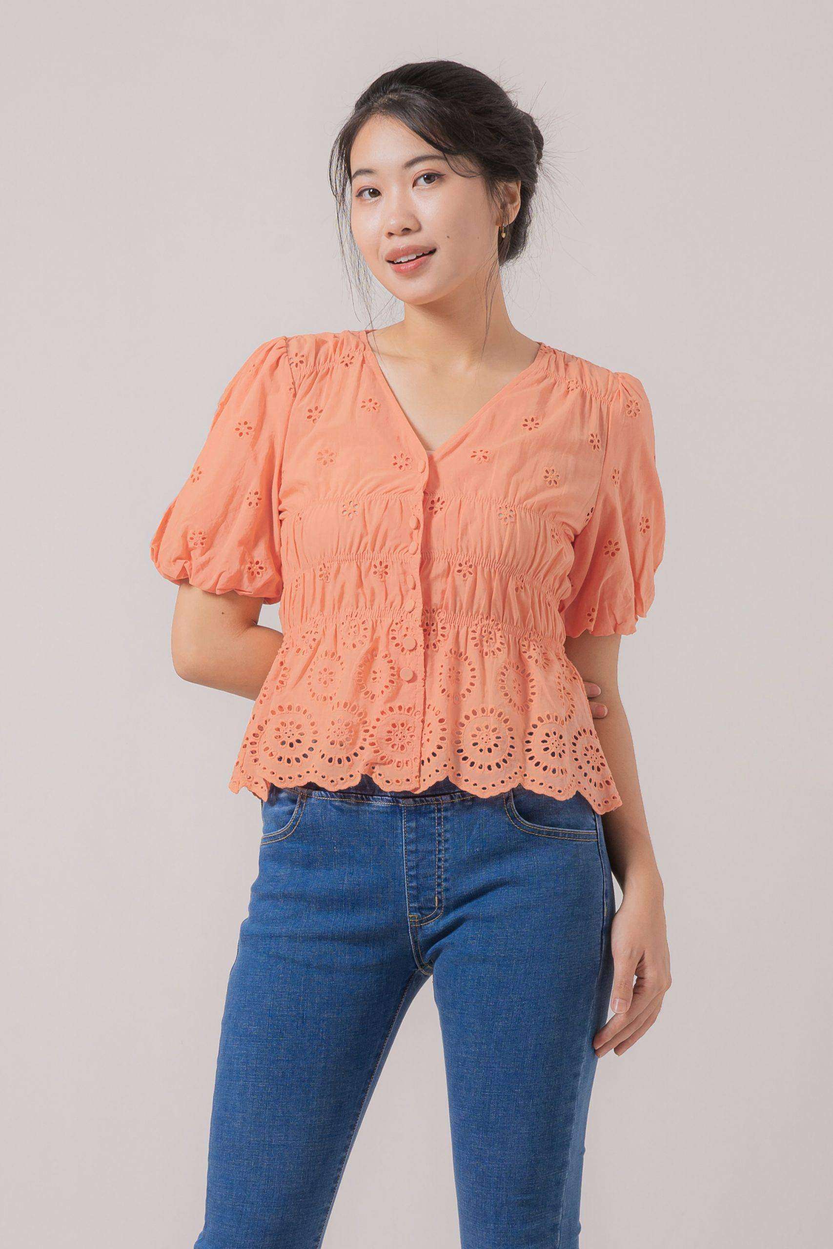 -Detail puff sleeves dengan v-neck yang menawan dan kancing depan variasi