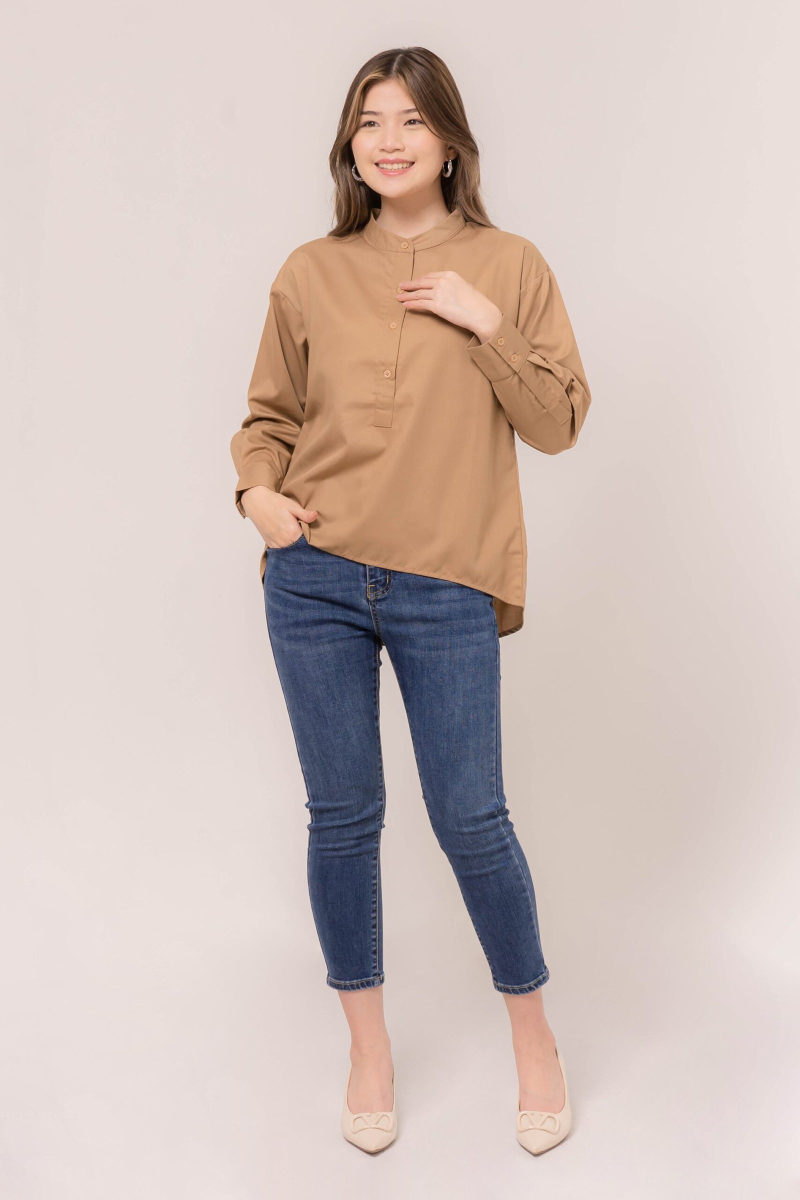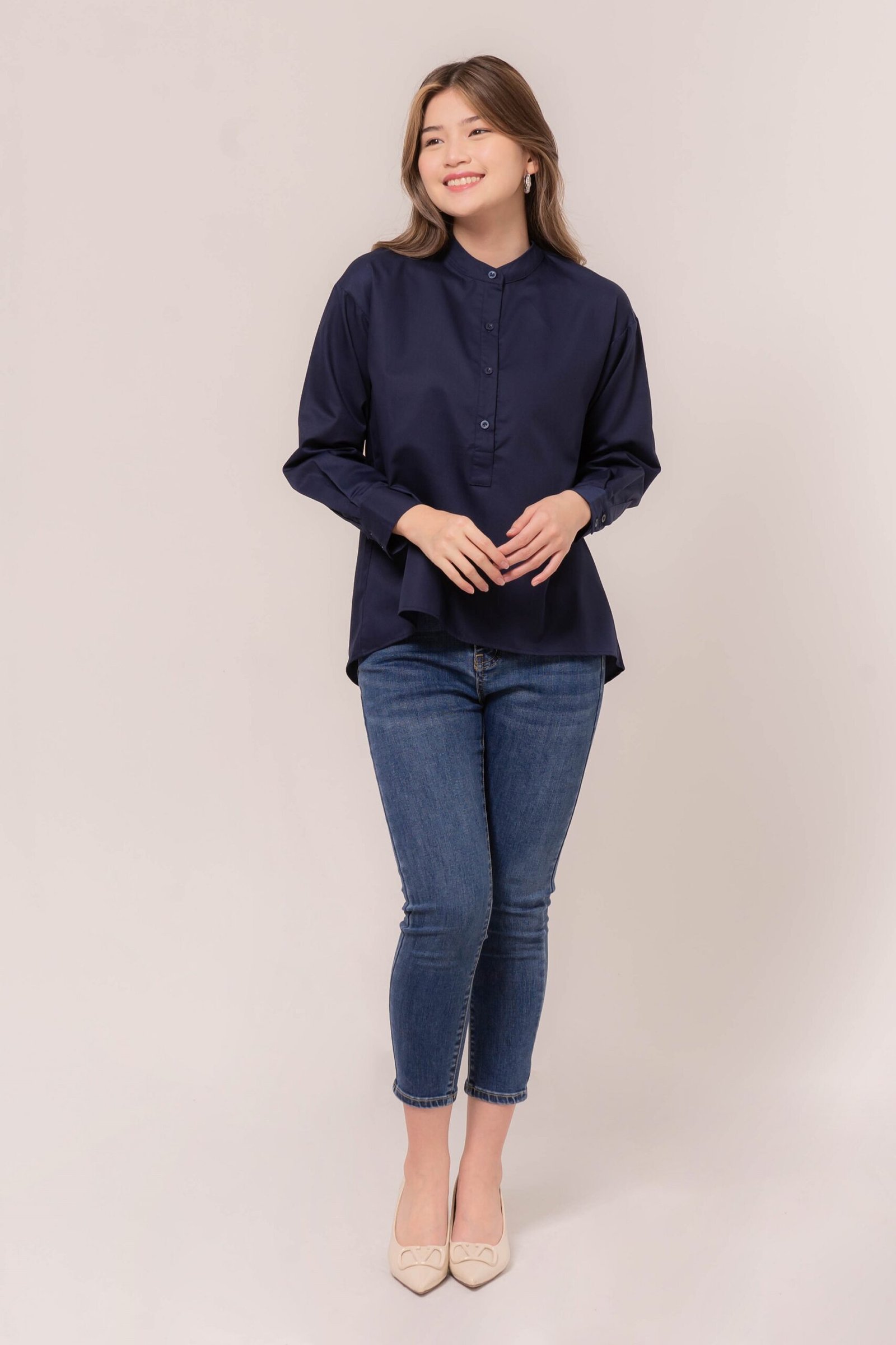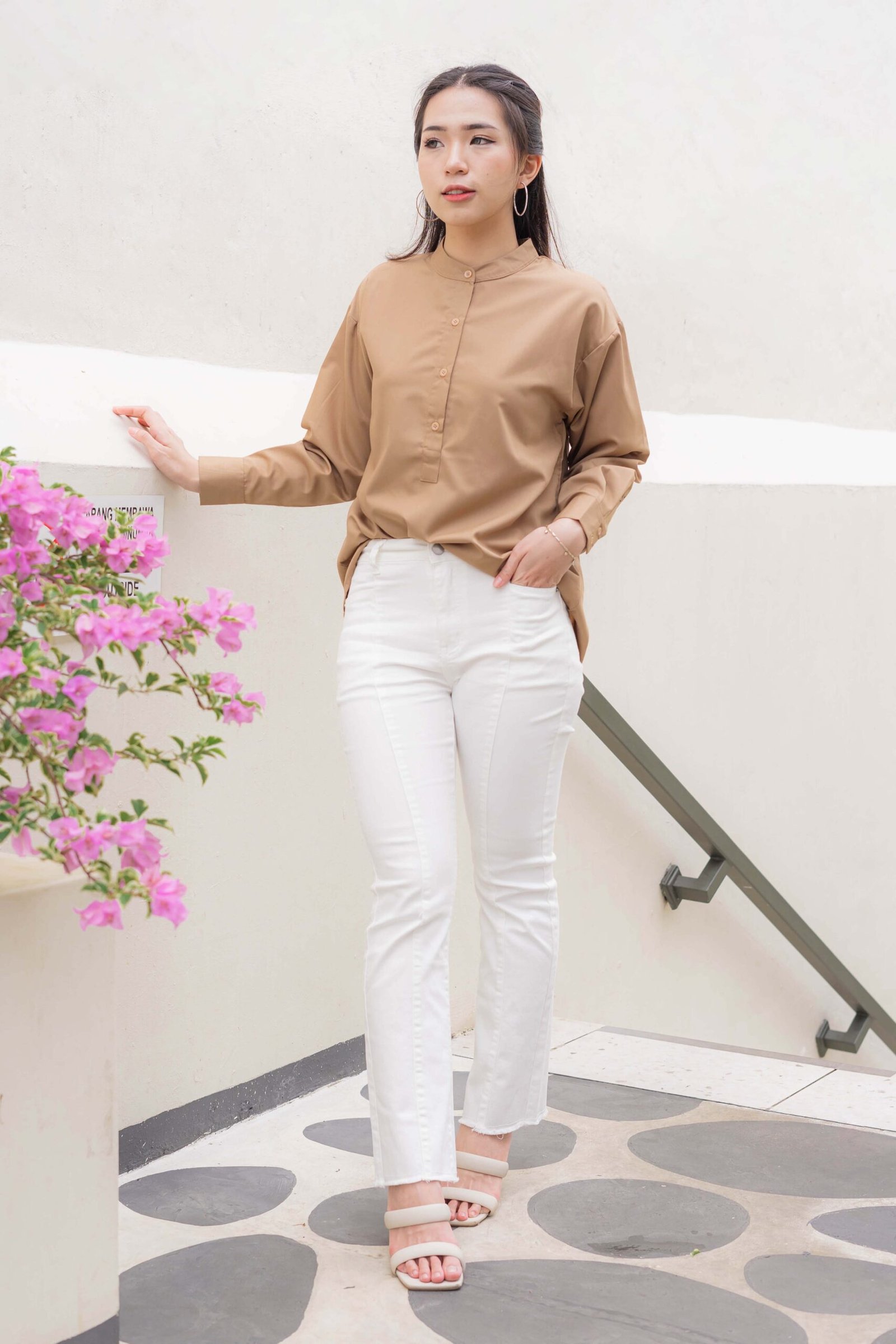 Tampilan formal yang cantik dan santai, padukan dengan celana panjang untuk menambah kesan formal