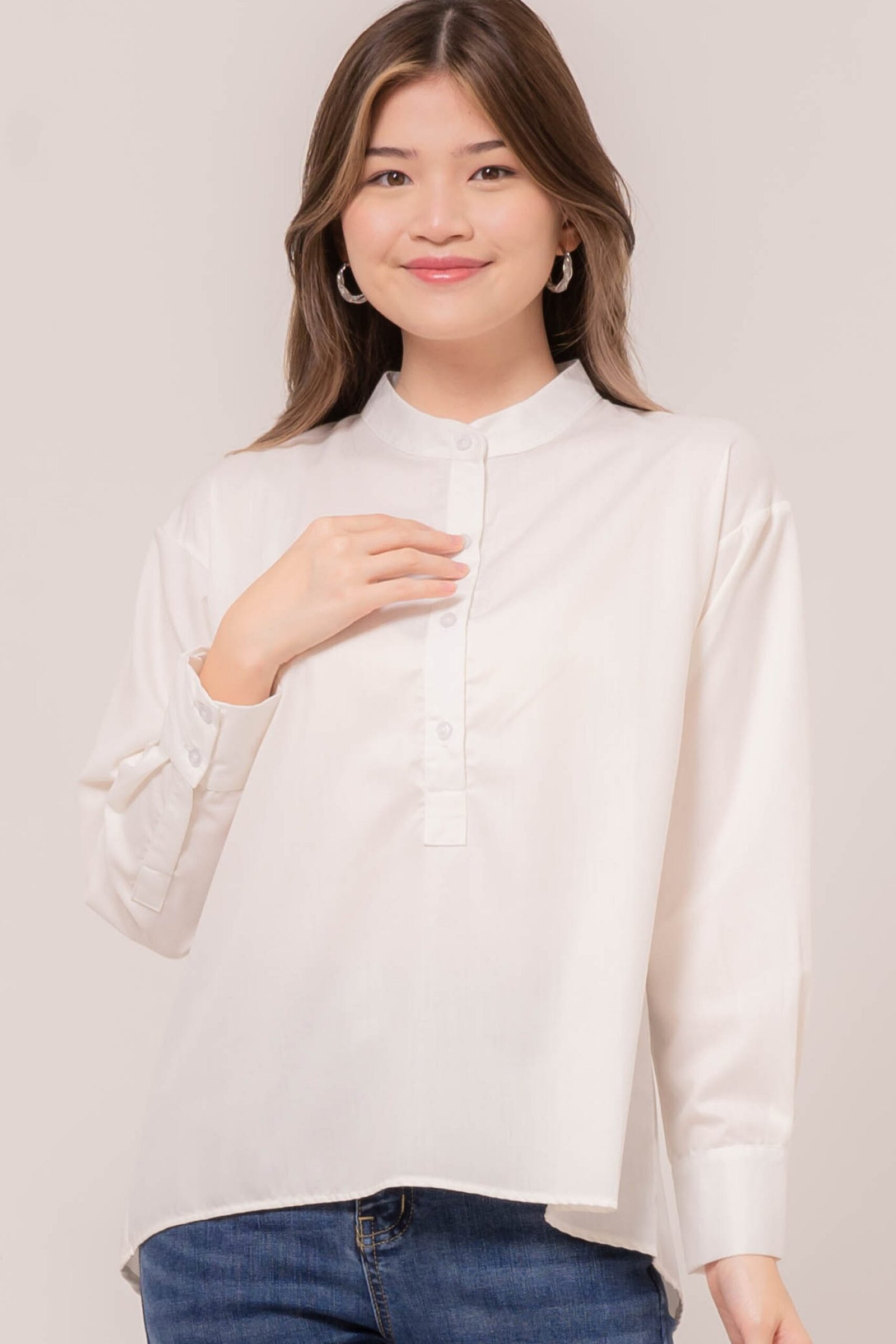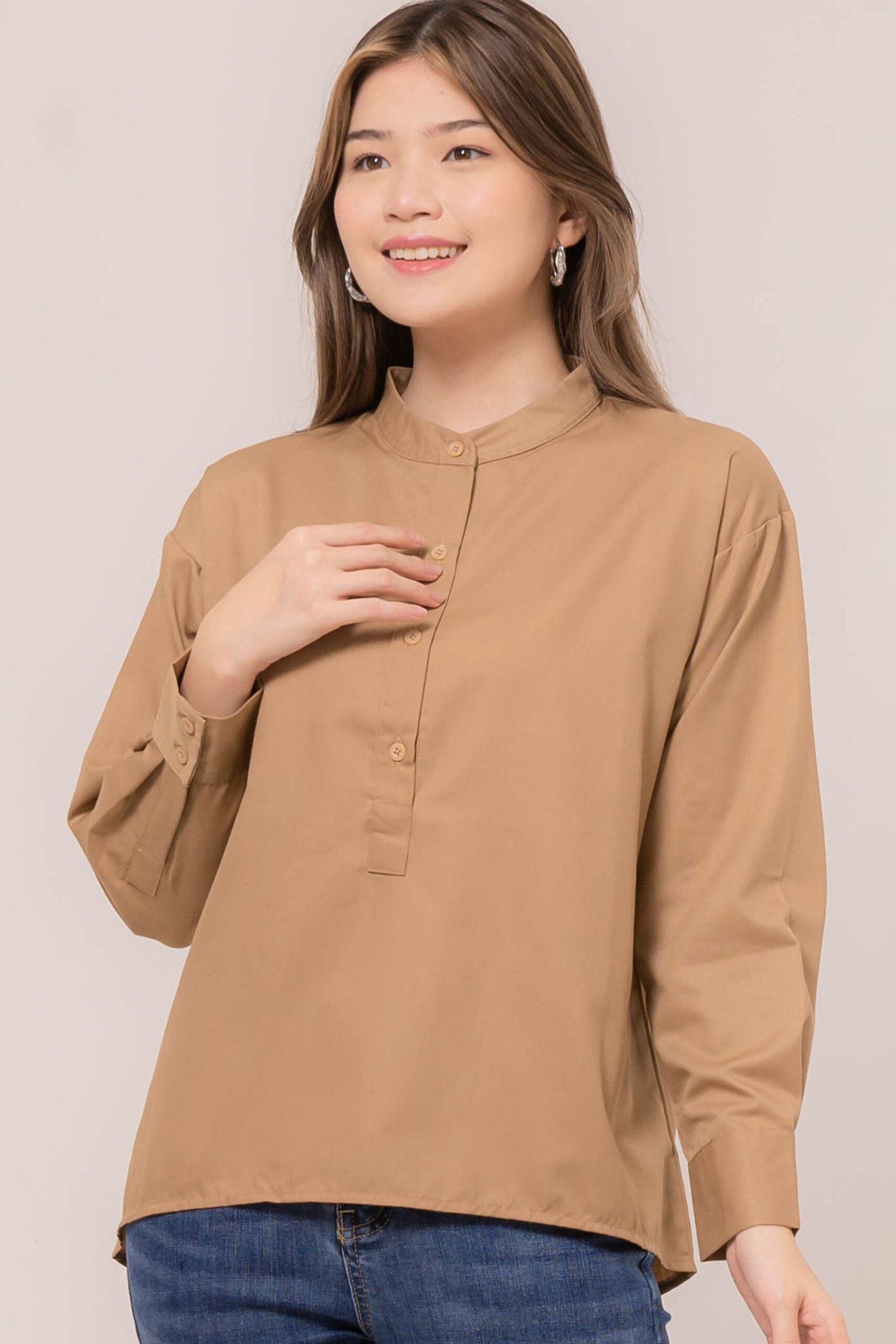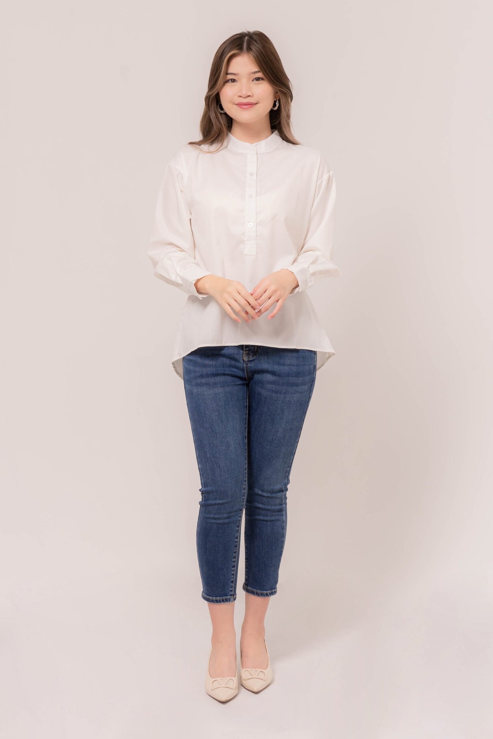 Tampilan formal yang cantik dan santai, padukan dengan celana panjang untuk menambah kesan formal