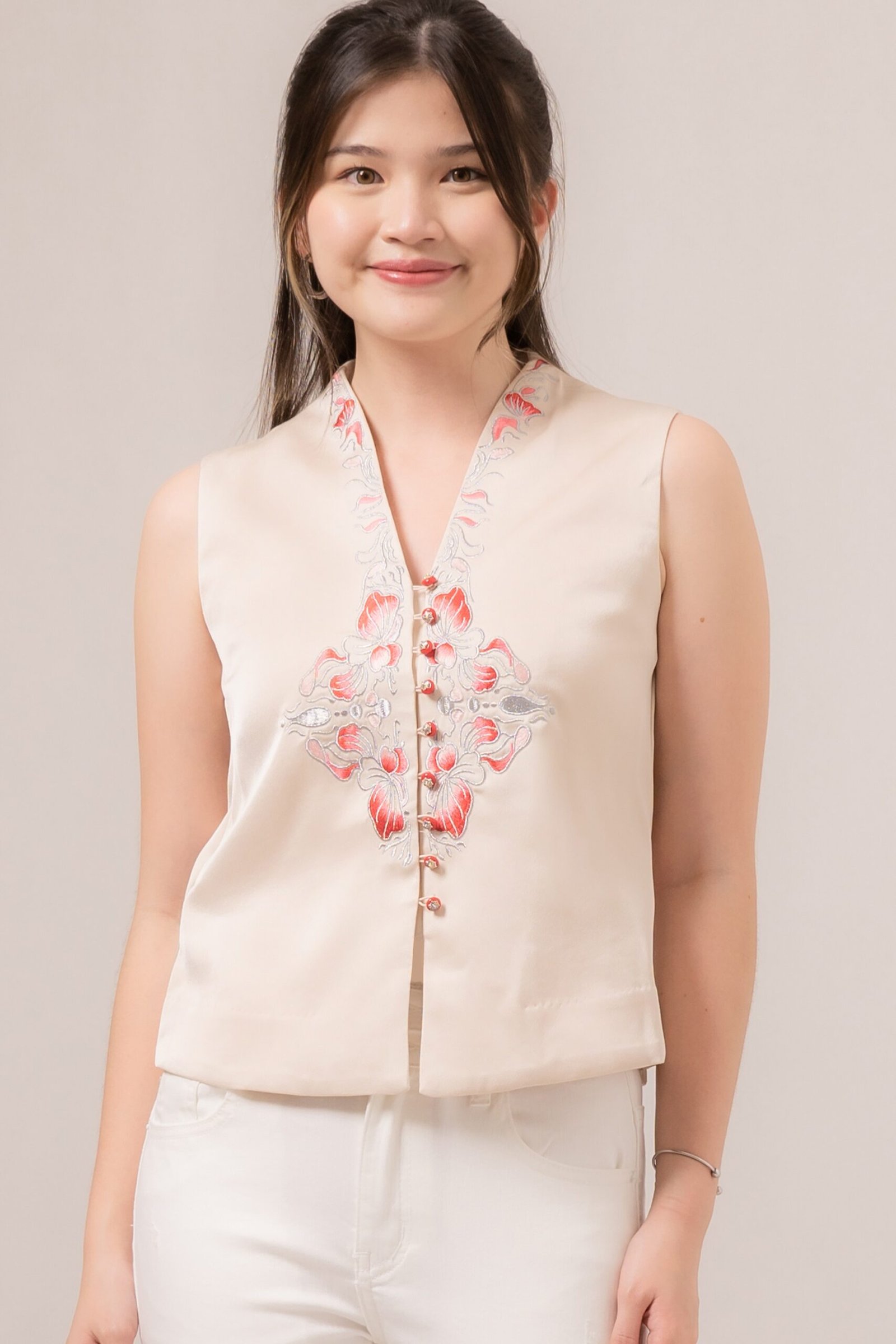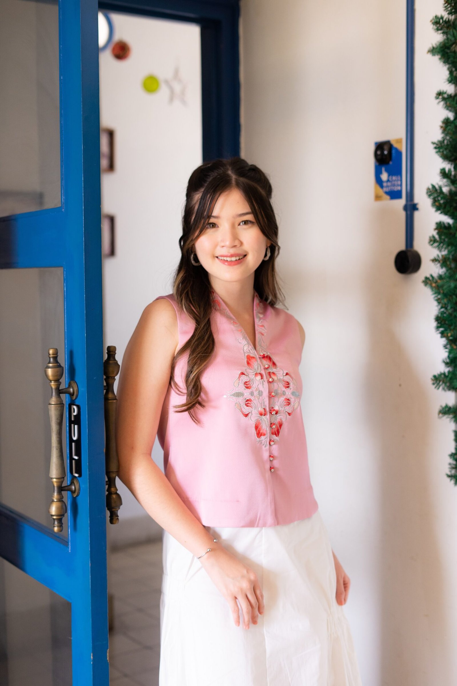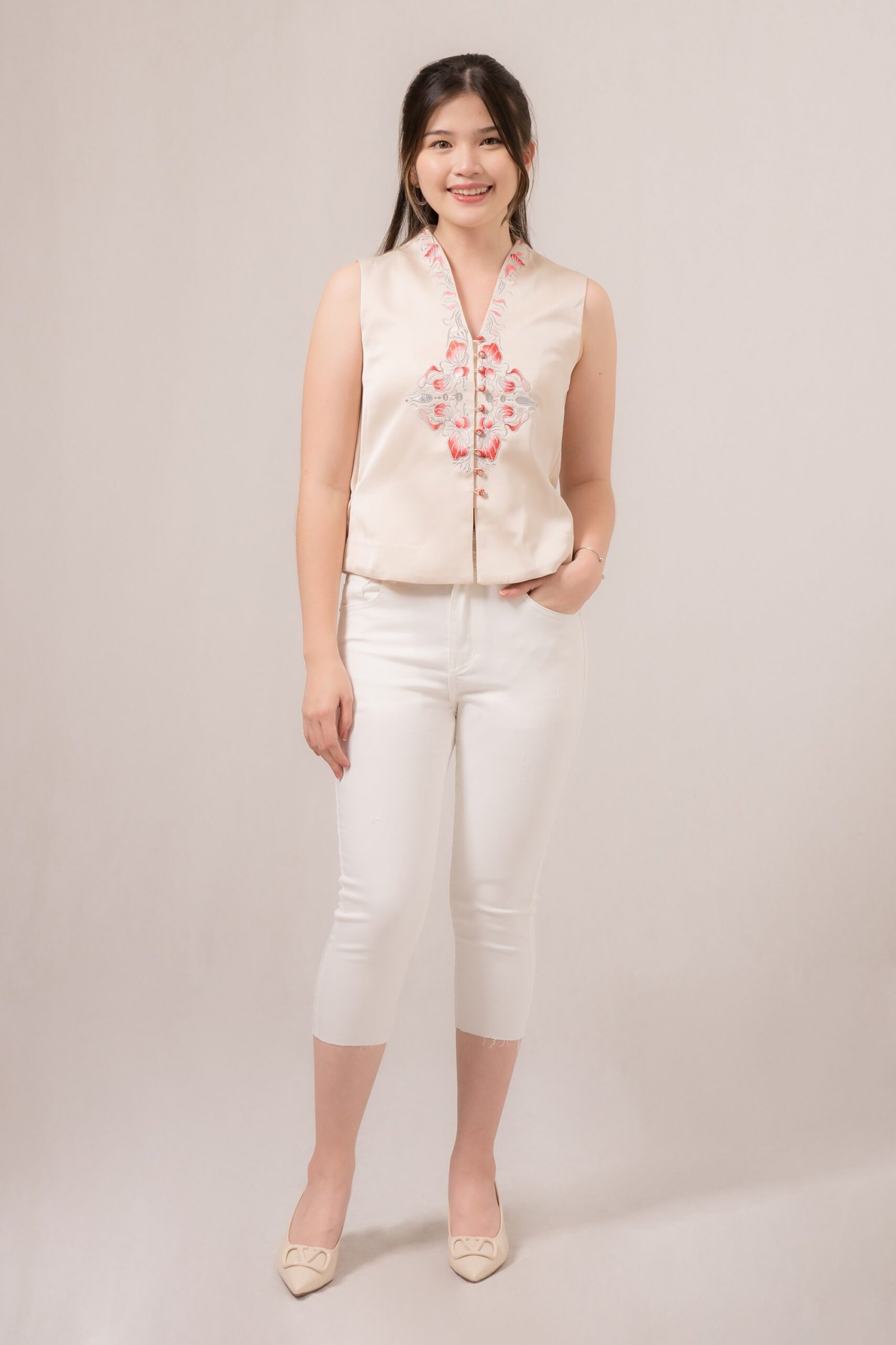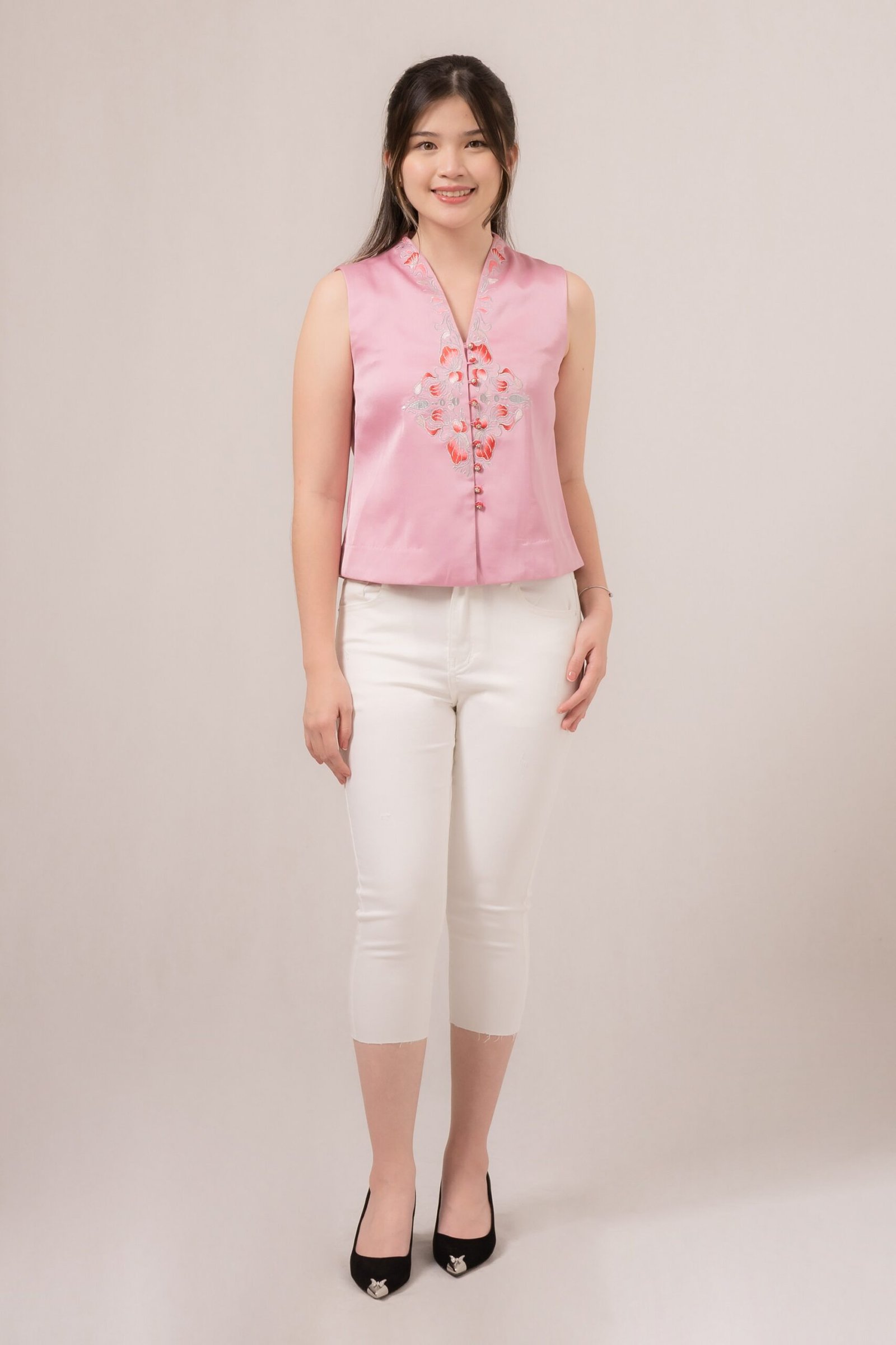 Infusing the beauty of Orient details into the collection. Sweet mandarin button and beautiful embroidery