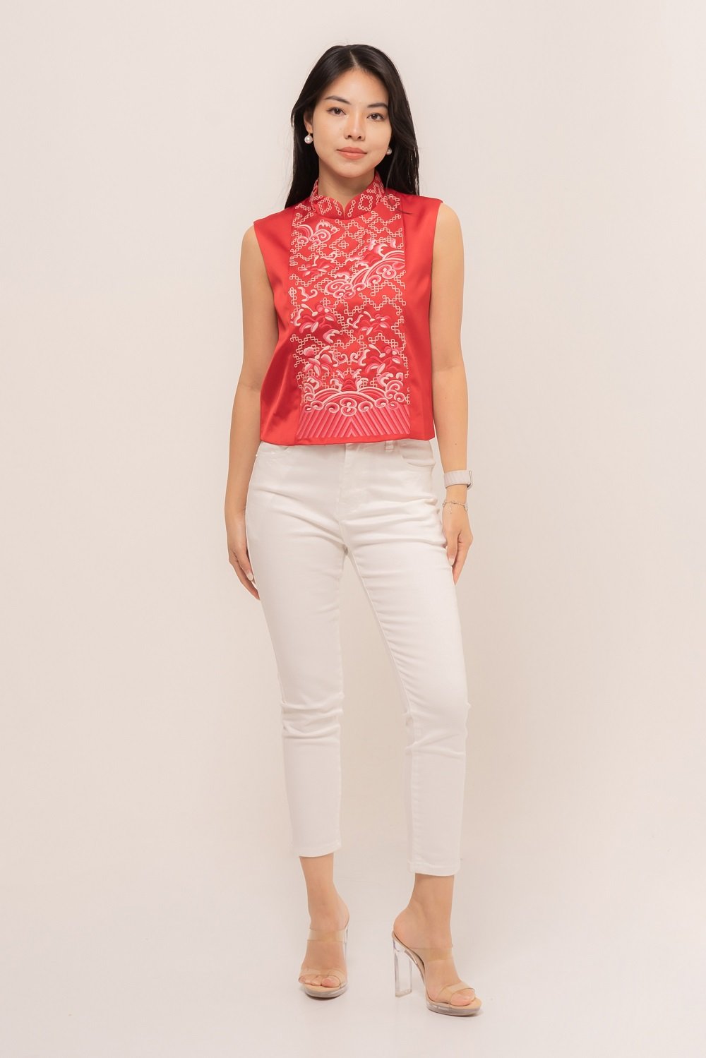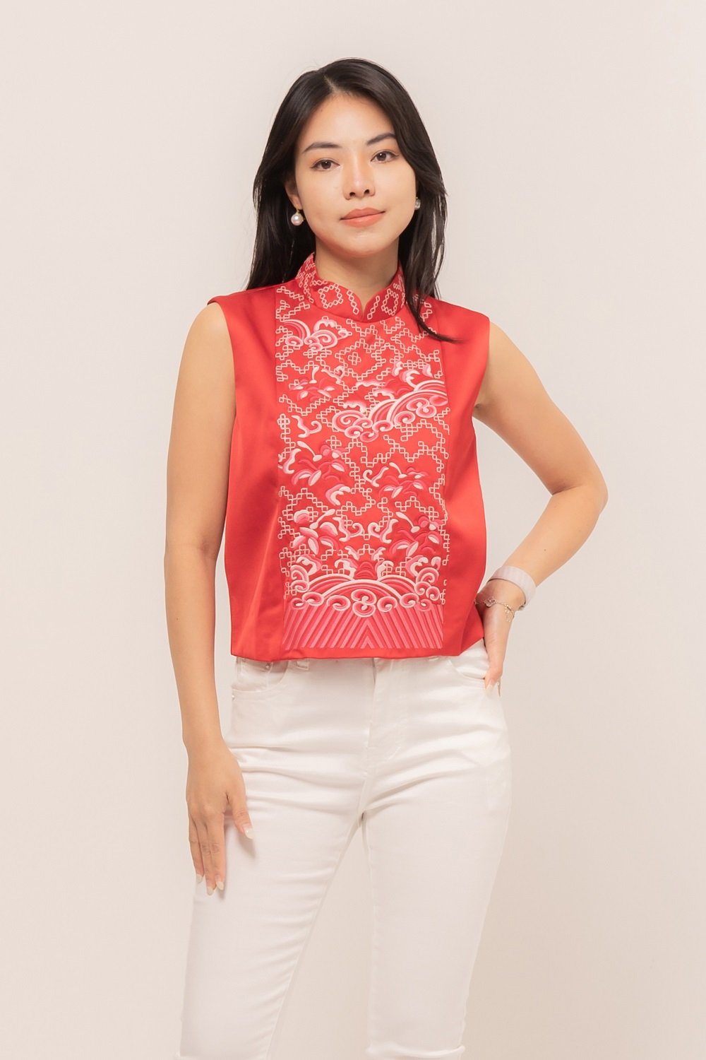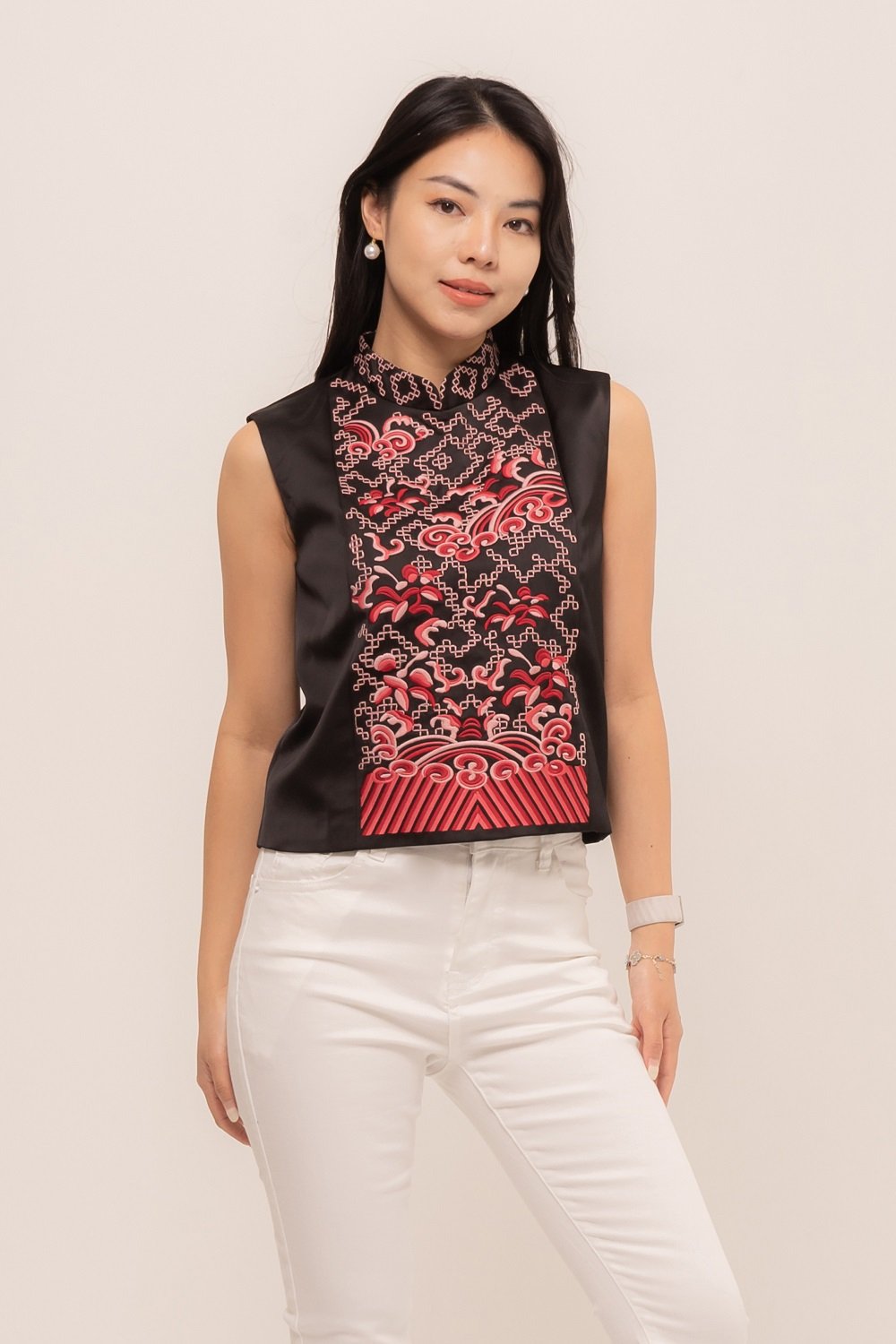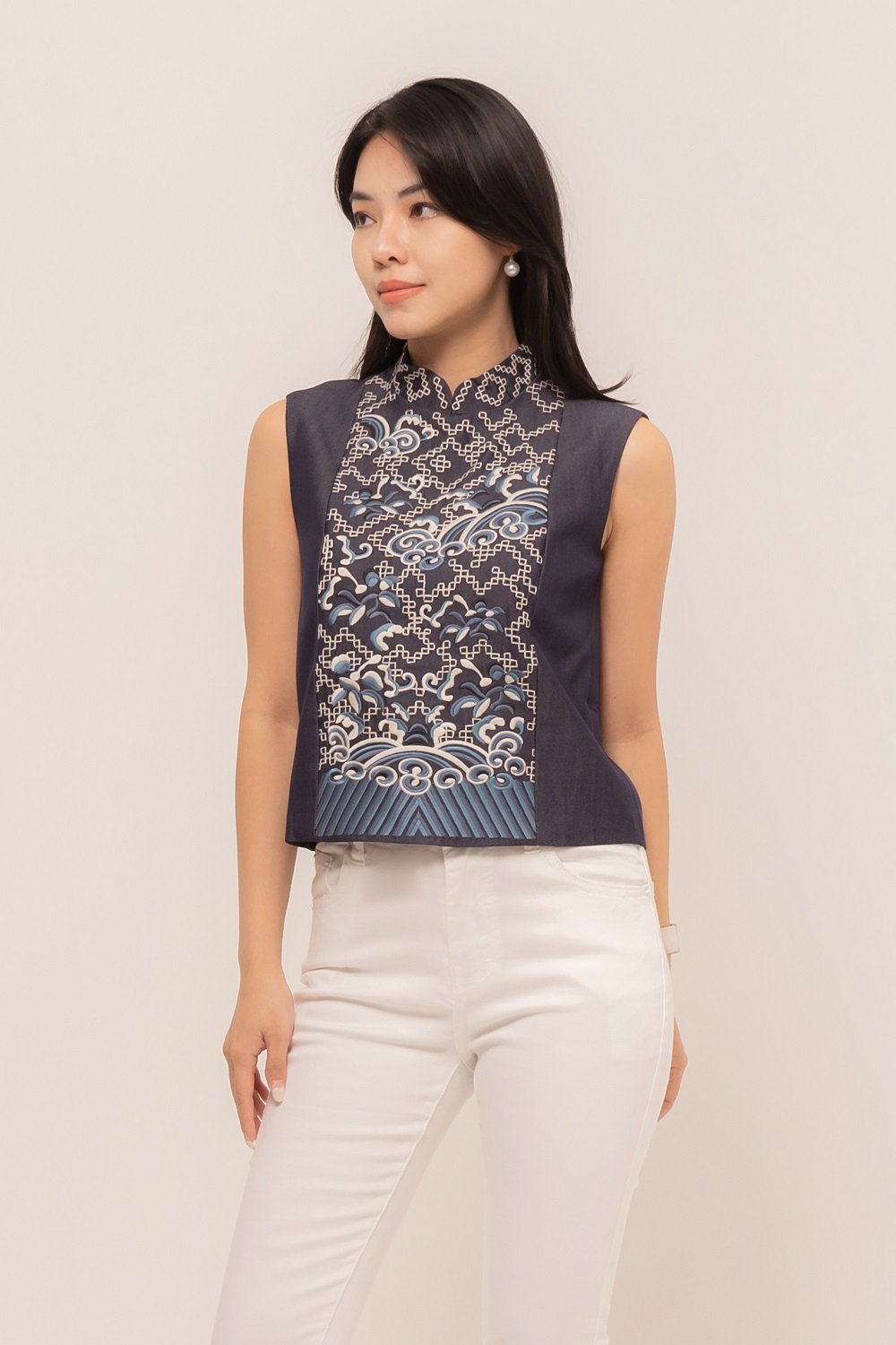 -Bordiran ornamen mandarin yang menawan pada bagian depan