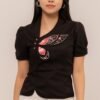 -Lengan puff yang manis dengan kancing variasi yang cantik