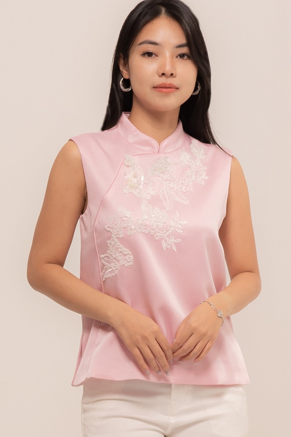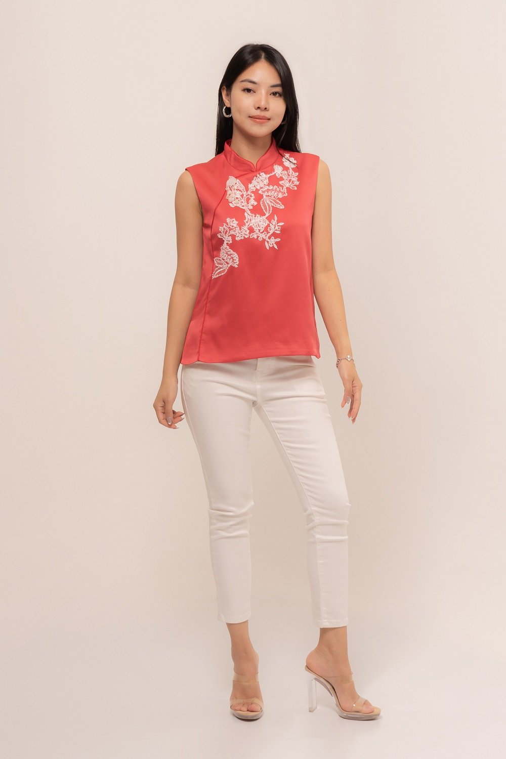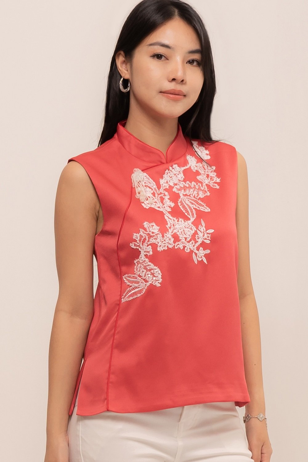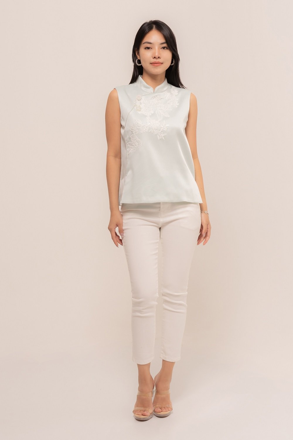 YueTing Top is crafted from the finest silk, which drapes beautifully over the body. The intricate details, such as the delicate embroidery and elegant button, add a touch of luxury and sophistication.