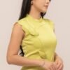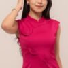 -Kerah mandarin dengan lengan scallop yang manis