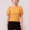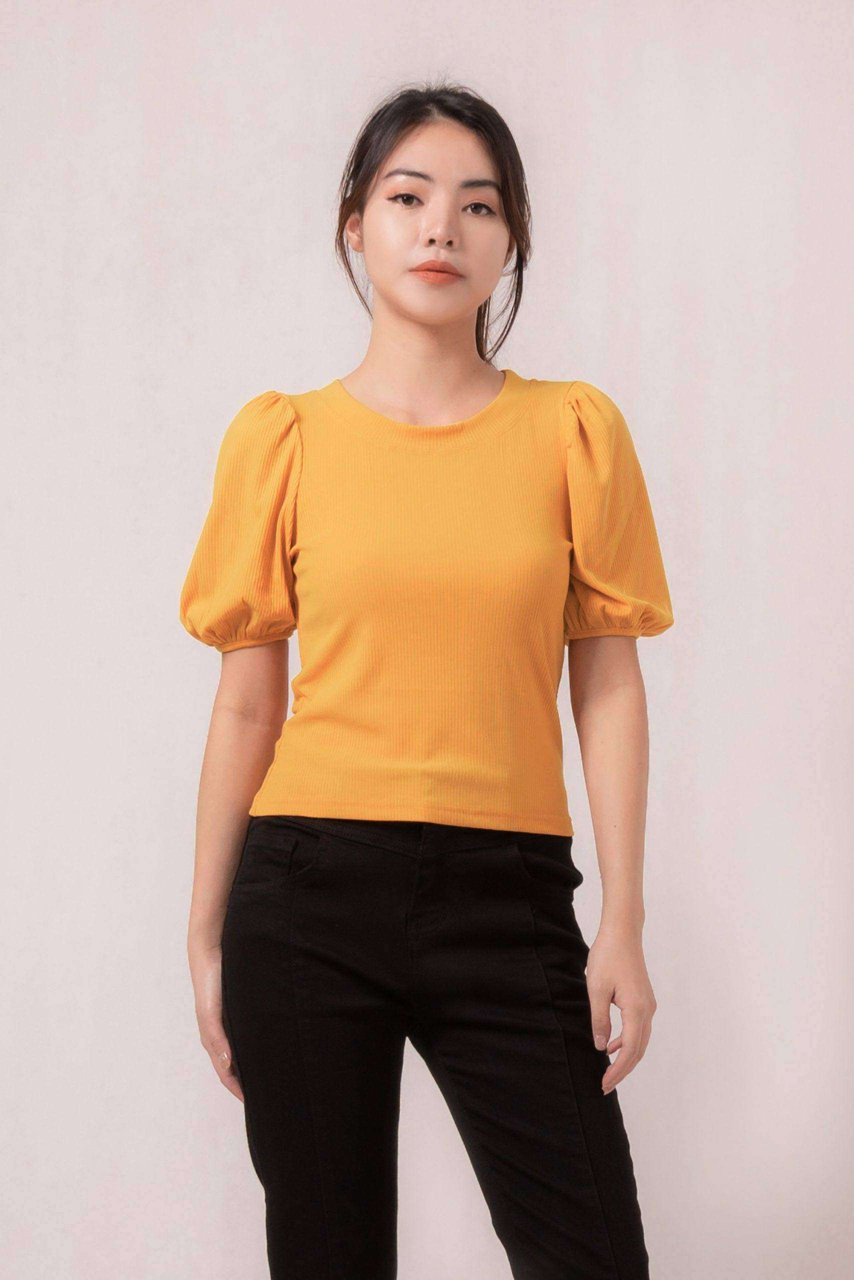 Flower top dengan square neck dan ruffle manis pada puff sleeves membuat tampilanmu semakin sempurna