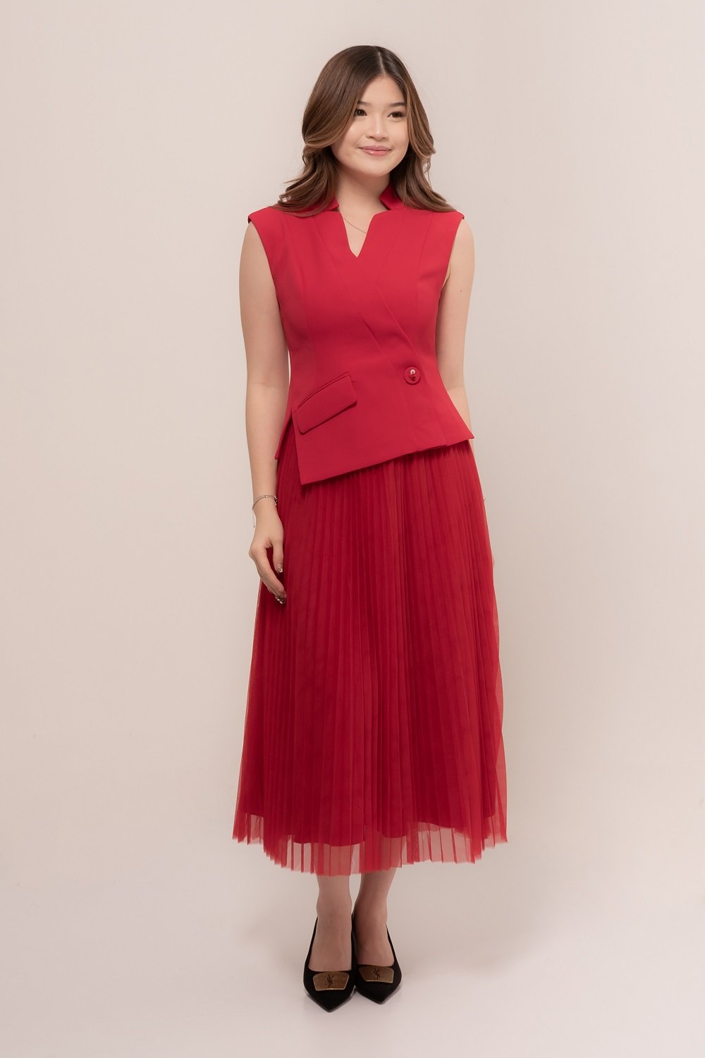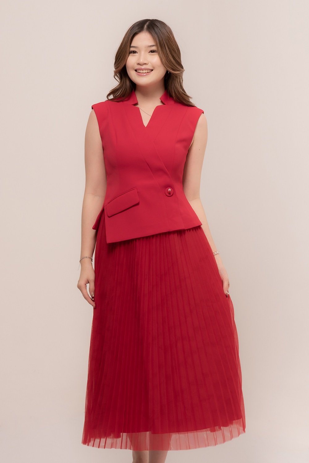 Our Zivva Sleeveless Pleated Dress flows beautifully, giving you a timeless look that’s perfect for any occasion
