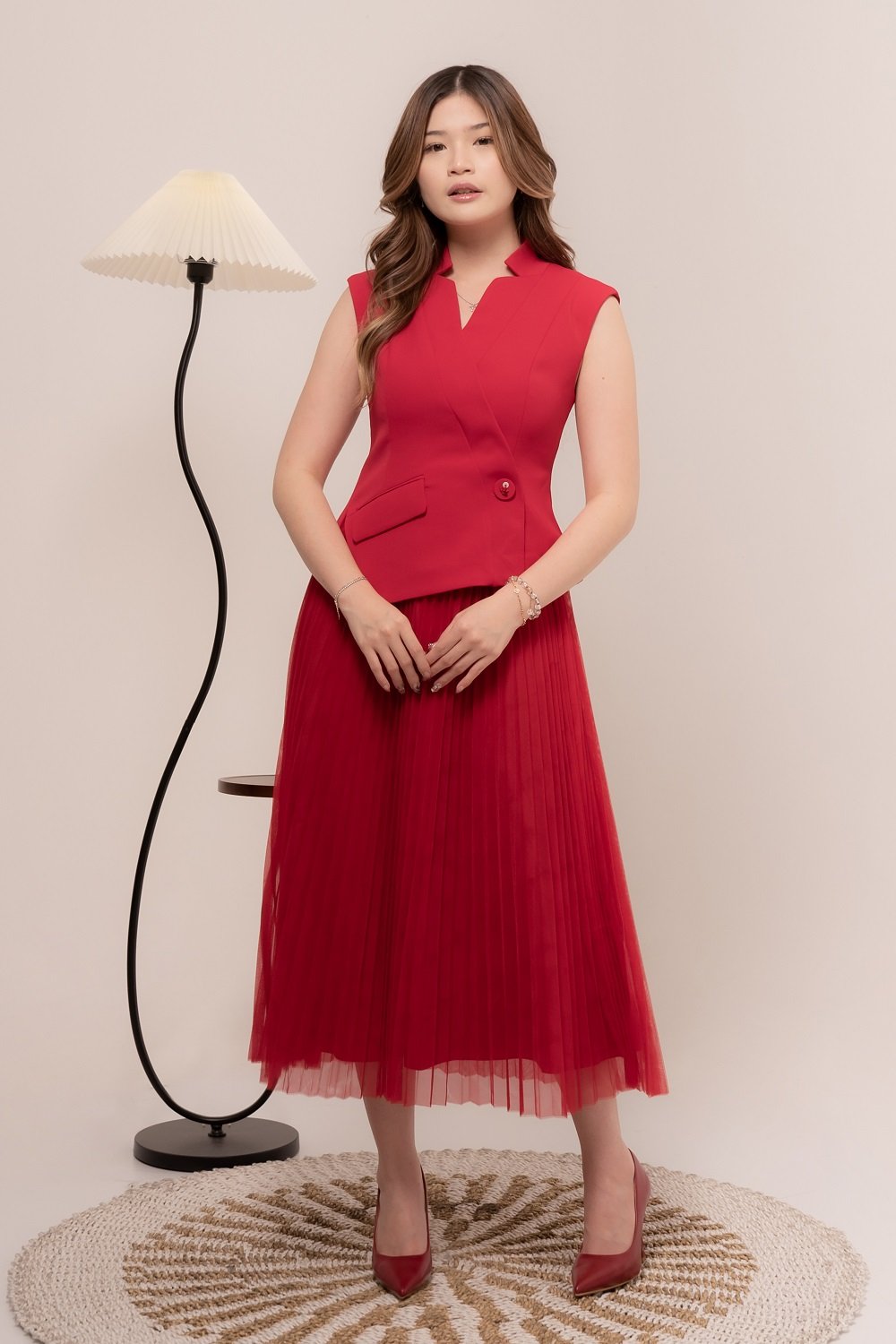 -Pleats yang manis dengan kain furing pada bagian dalam